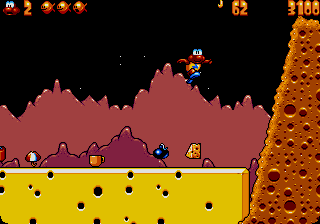 Some games might give a visual indicator of how many secrets you found. Some even use secrets as more than just bonuses, and instead require you to find a number of secrets to progress through the game. A good example of this is James Pond 3. In it, every level has 4 teacups that you need to find before a level is properly completed. You can usually finish a level without finding all the teacups, but sometimes teacups are accompanied by map pieces that allow you to reach important areas on the world map. Some levels actually do require you to find all the teacups to activate the exit. These levels are a good way to introduce hidden map pieces, which shows the importance of exploration to the player. Often these teacups are hidden in tricky places, levels with less secrets just put their teacups out in the open.